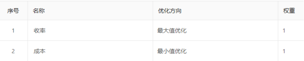 首先,打開國工智能數據大腦平臺,進入實驗優化界面,對實驗信息進行配置。使用的指標分別是收率和成本,要求收率最大化及成本最小化,并可分配指標的權重,如圖2。