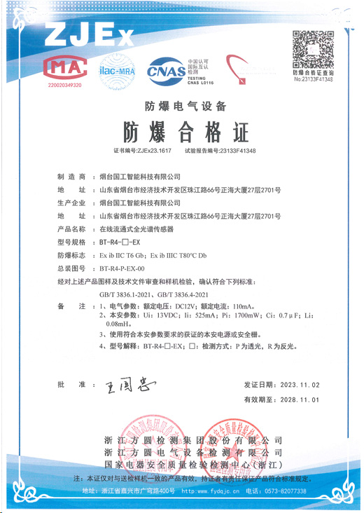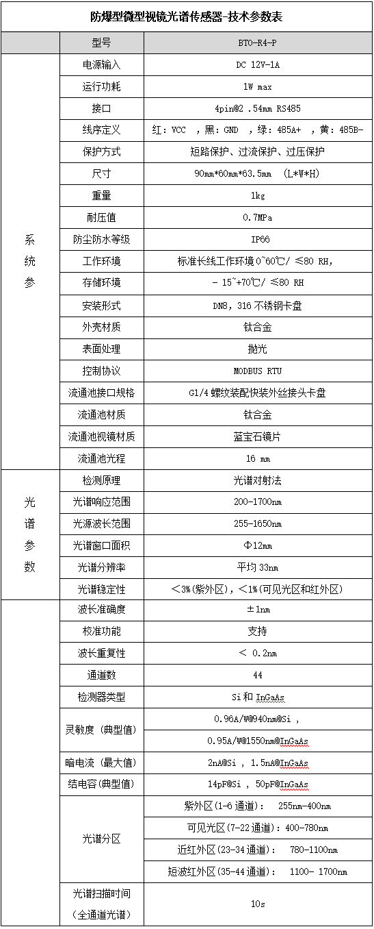 根據(jù)客戶現(xiàn)場情況,我們采用的是防爆型視鏡光譜傳感器。防爆型微型視鏡光譜傳感器對于傳統(tǒng)的視鏡、光譜傳感器分離的產品,該傳感器具有安裝更加方便,受環(huán)境干擾更小,使用安全性更高特點,并且不受游離堿和溫度等因素的影響,在檢測有效氯濃度的同時也能檢測游離堿濃度,更有利于實時準確判斷反應進度和反應終結點。